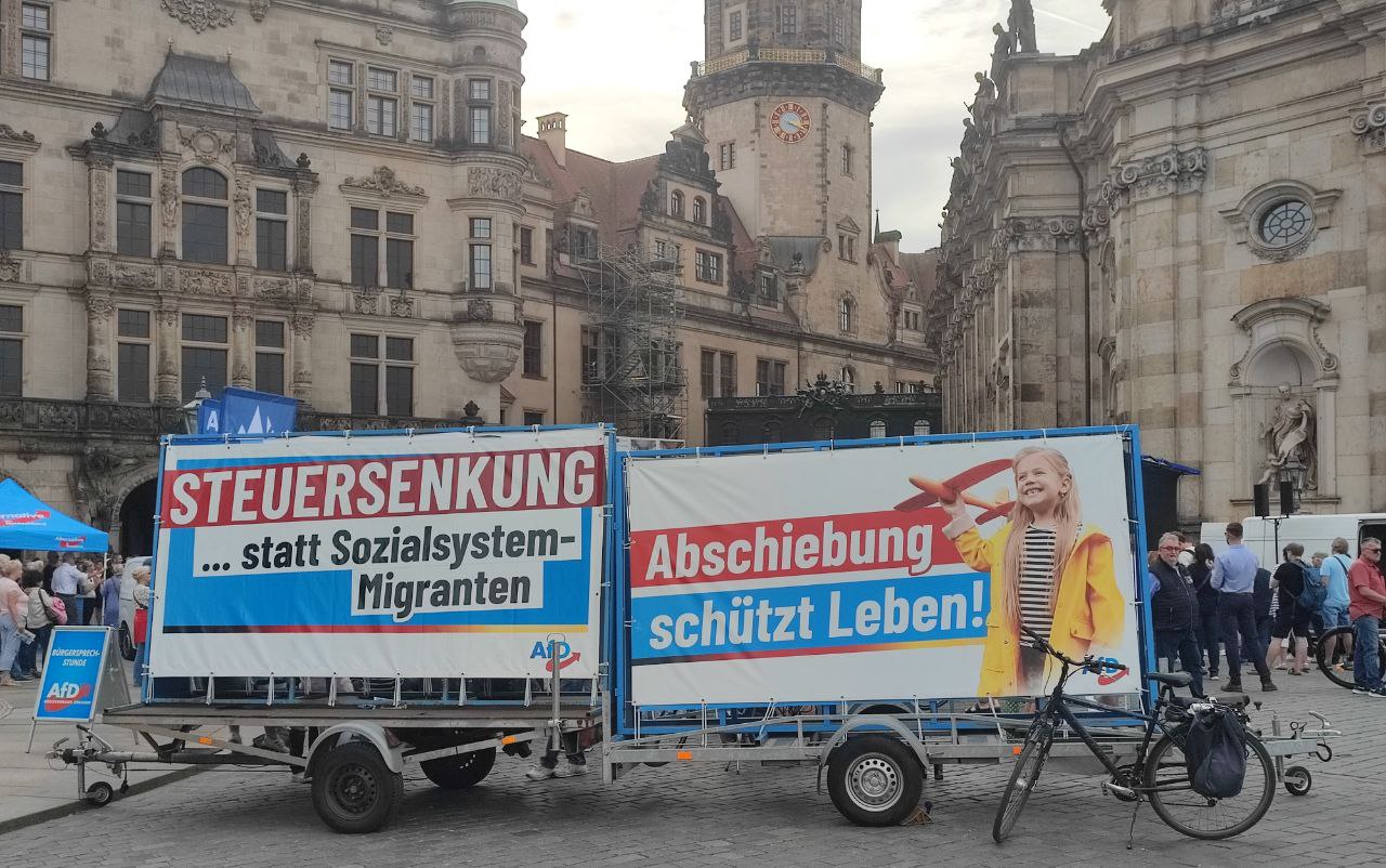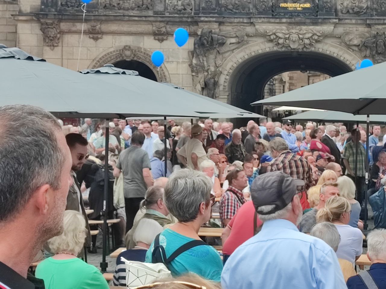 Bei herrlichem Sonnenschein und blauem Himmel begrüßte gestern die #AfD Dresden viele Gäste von nah und fern auf dem Schloßplatz in #Dresden.