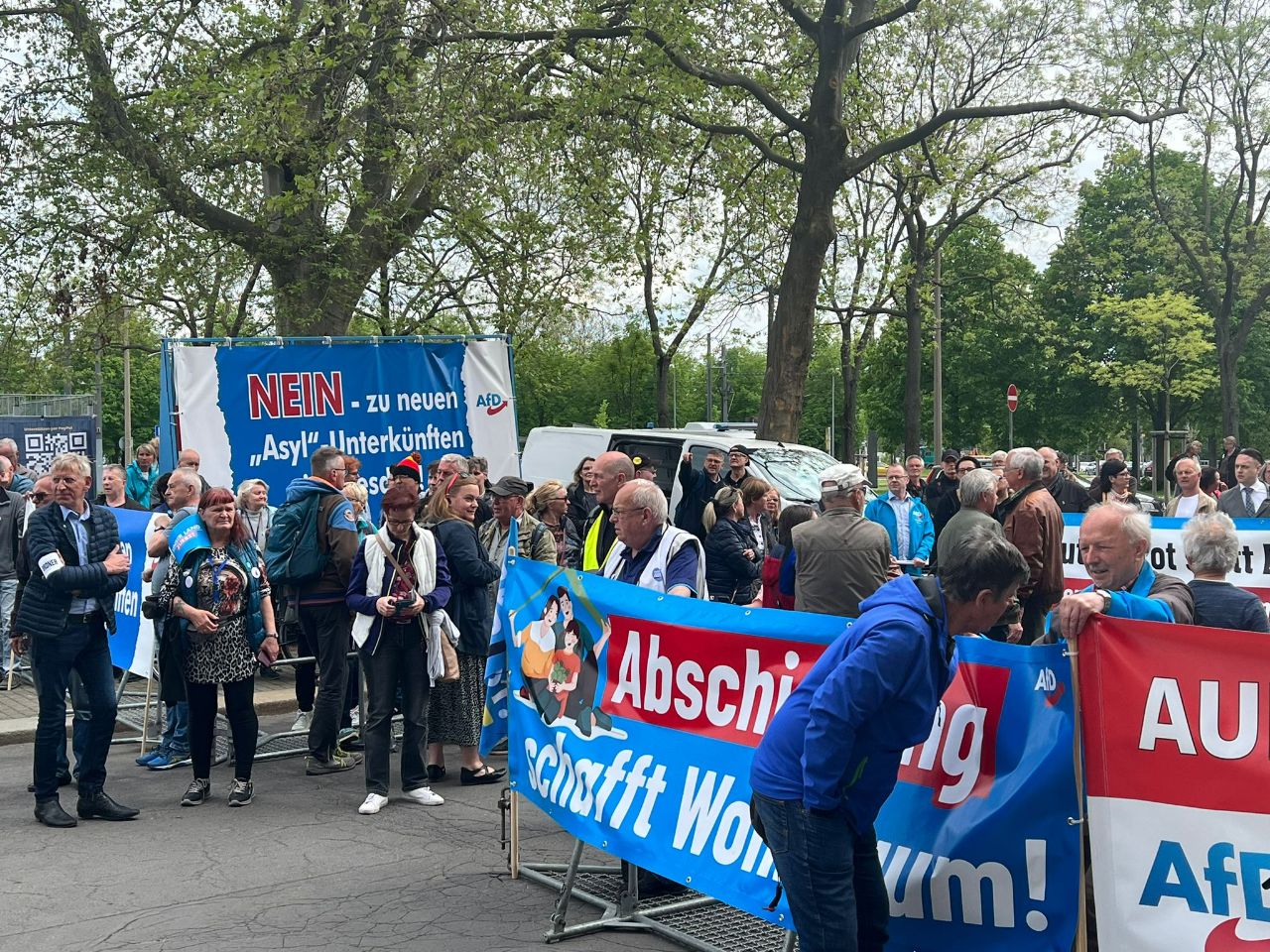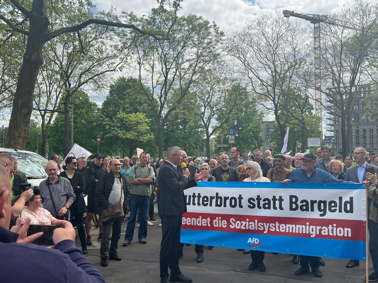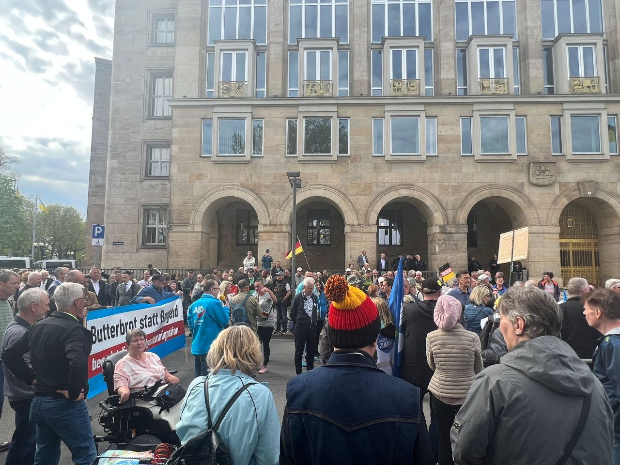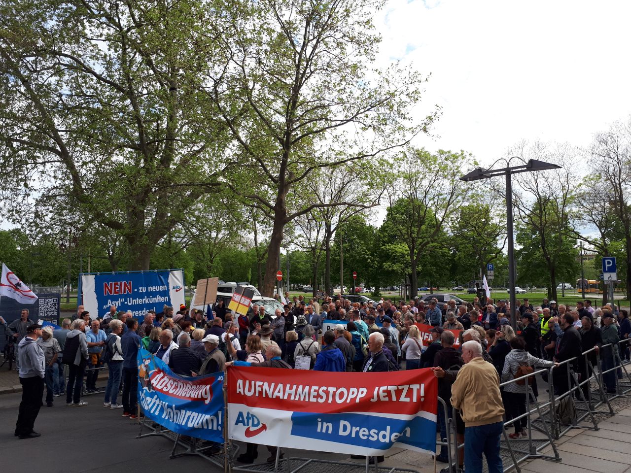 AfD war vor dem Dresdner Rathaus, um ein klares Bekenntnis gegen weitere Asylunterkünfte abzugeben und die Stadträte zu unterstützen, die heute mit einem Nein stimmen werden. AfD-Landesvorsitzender Jörg Urban und Landesparteiobmann der FPÖ Steiermark Mario Kunasek (eine Delegation ist derzeit in Dresden zu Besuch) brachten in ihren Redebeiträgen noch mal deutlich den Widerstand zur unkontrollierten Migration zum Ausdruck.