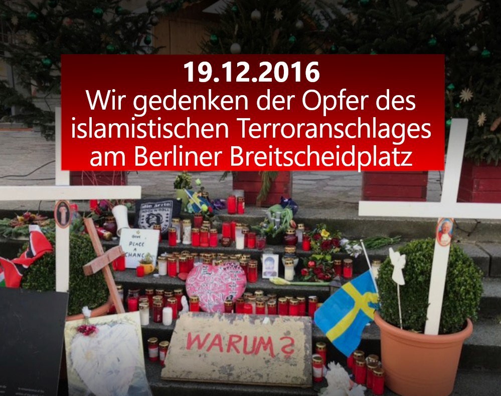 Wir gedenken der Opfer des islamischen Terroranschlages am Berliner Breitscheitplatz 19.12.2016