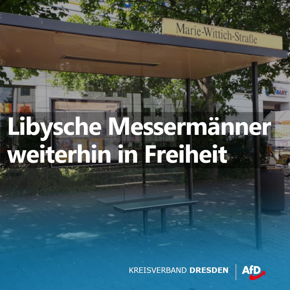 Am 5.5.2023 attackierten zwei Libyer einen Mann an der Bushaltstelle Marie-Wittich-Straße in #Dresden, schlugen ihn nieder und stachen mit einem Messer auf ihn ein. Ein Video vom Polizeieinsatz nach der Tat war damals in den sozialen Medien zu sehen. Auf eine Anfrage zum Stand der Ermittlungen kam nun heraus, dass keiner der beiden mutmaßlichen Messerstecher