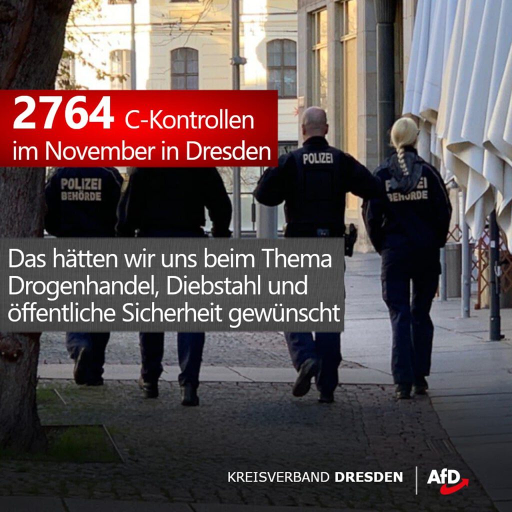 2764 C-Kontrollen (ÖPNV, Einzelhandel, Gastro und Quarantäne) wurden im November 2021 in Dresden durch das Ordnungsamt durchgeführt. Mit Unterstützung des Polizeivollzugsdienstes waren regelmäßig bis zu 25 Teams werktags in der Zeit von 7 bis 24 Uhr unterwegs und überprüften die Einhaltung der politisch motivierten C-Zwangsmaßnahmen. Wo waren diese Einsatzkräfte bei den Problemen Drogenhandel, Diebstahl oder […]