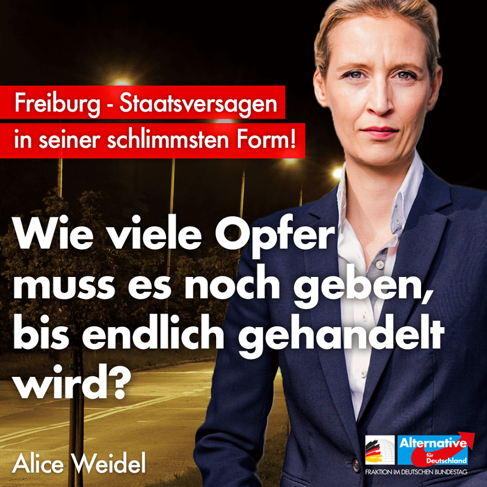 Von Alice Weidel MdB Die Entwicklungen im Fall der Gruppenvergewaltigung einer 18-Jährigen in Freiburg stimmen fassungslos. Majid H. missbrauchte das betäubte Mädchen vor einer Diskothek, ließ es in einem Gebüsch liegen und holte mindestens sieben weitere Männer hinzu, die sich über vier Stunden an ihrem wehrlosen Opfer vergingen. Die DNA liegt den Ermittlern jeweils […]