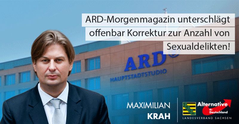 Von AfD Sachsen Zu einem Bericht des ARD-Morgenmagazins „Moma“ erklärt der sächsische AfD-Landes- und Fraktionsvorsitzende, Jörg Urban: „Unmittelbar nach der Podiumsdiskussion mit den Chefredakteuren von ARD und ZDF, Gniffke und Frey, bestätigt das ARD-Morgenmagazin die schlimmsten Vorwürfe hinsichtlich einseitiger, verfälschender und unwahrer Berichterstattung. Der stellvertretende AfD-Landesvorsitzende Maximilian Krah hatte die exorbitant angestiegenen Sexualdelikte in Chemnitz, […]