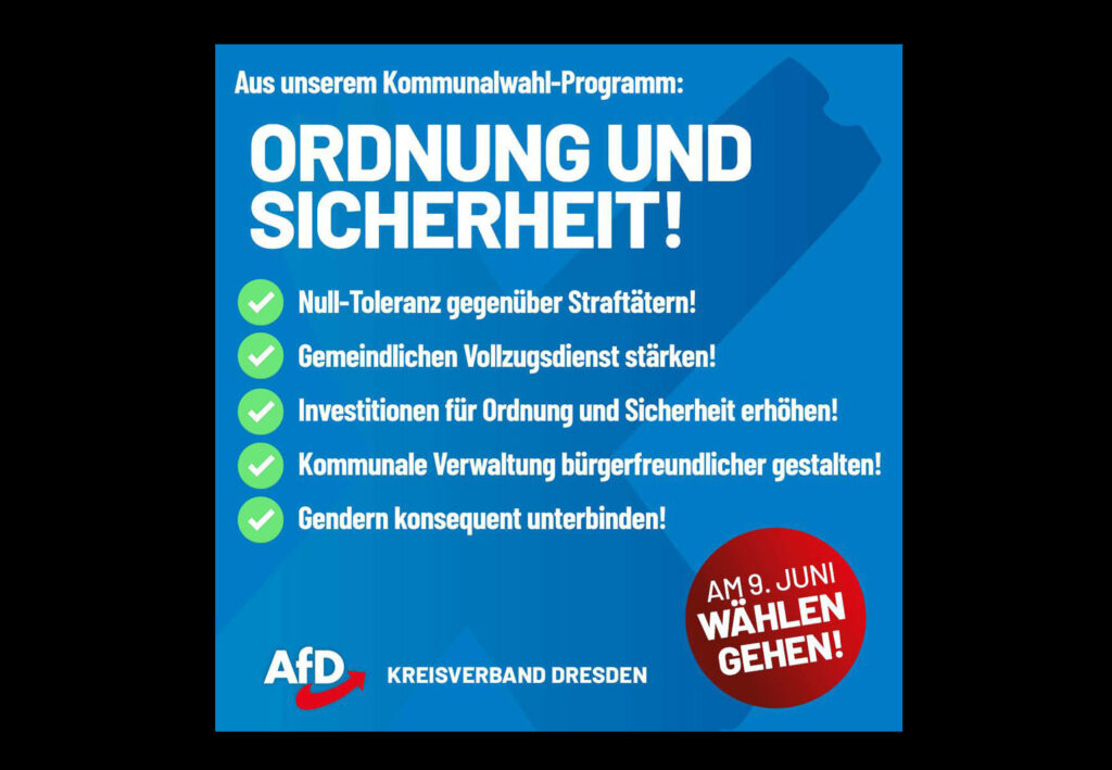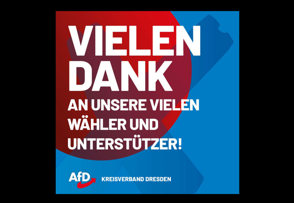 Es ist ein ausgezeichnetes Ergebnis, dafür herzlichen Dank an alle Mitglieder, Wähler und Unterstützer. Wir nehmen diesen klaren Wählerauftrag mit Freude an. In diesem Zusammenhang erheben wir Anspruch auf mehrere Bürgermeisterposten in der Landeshauptstadt Dresden. Wir benötigen in Dresden endlich wieder eine vernunftgeleitete Politik. #dresden #afd