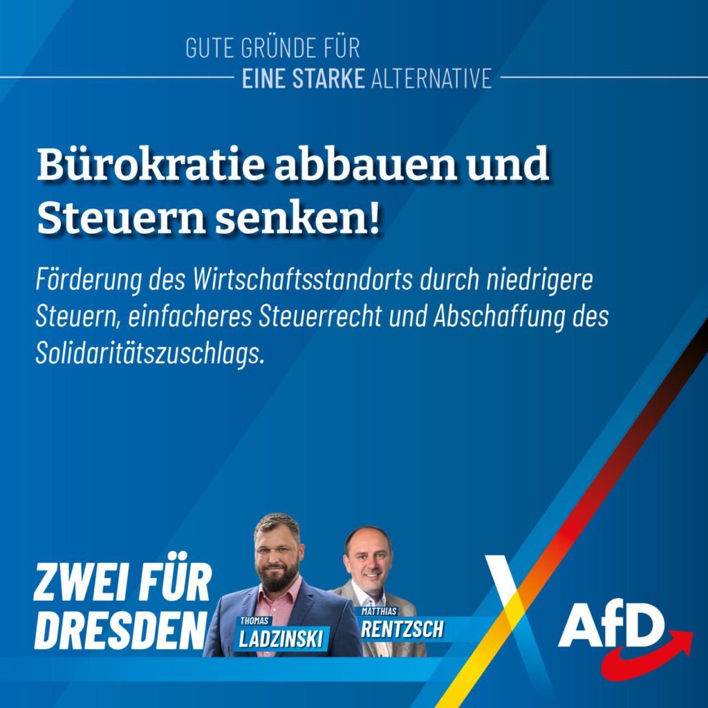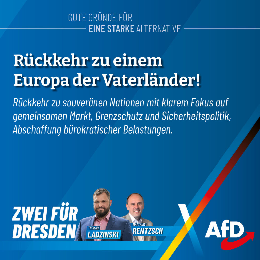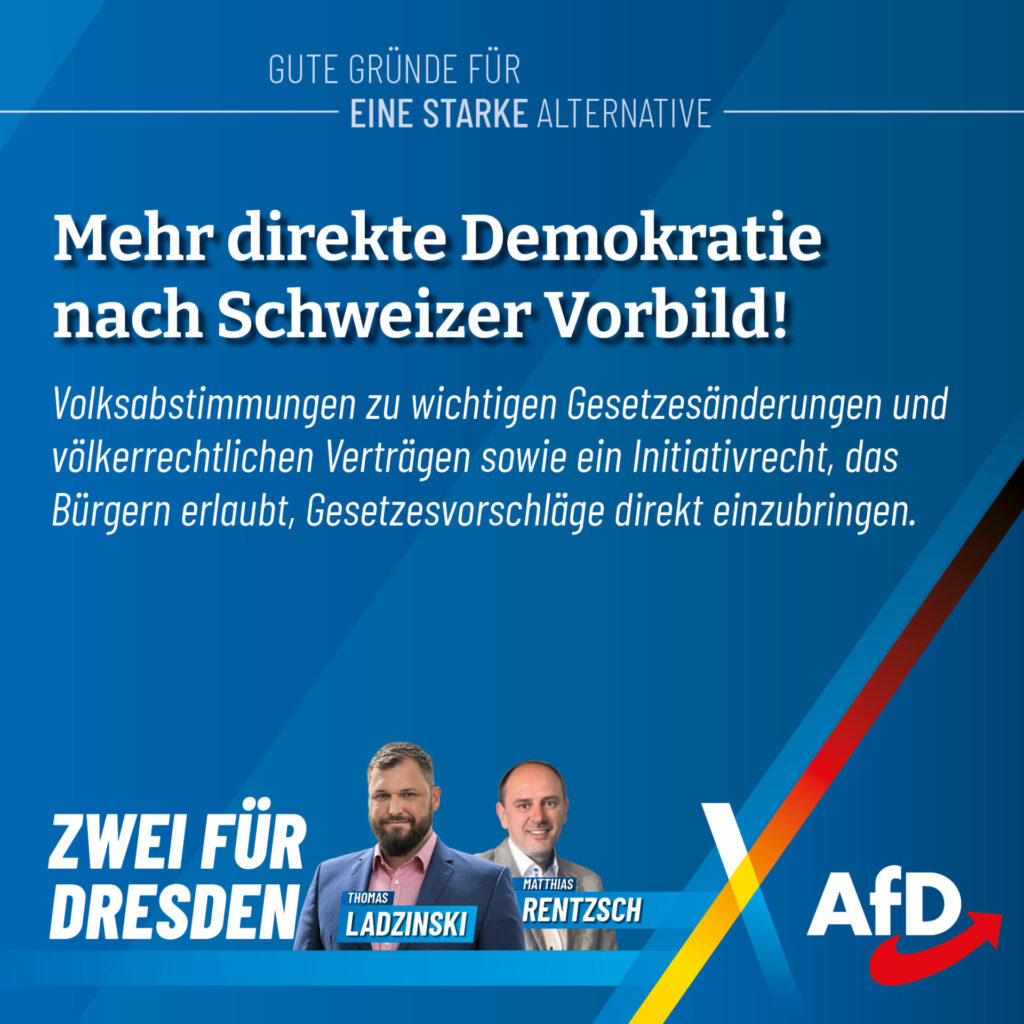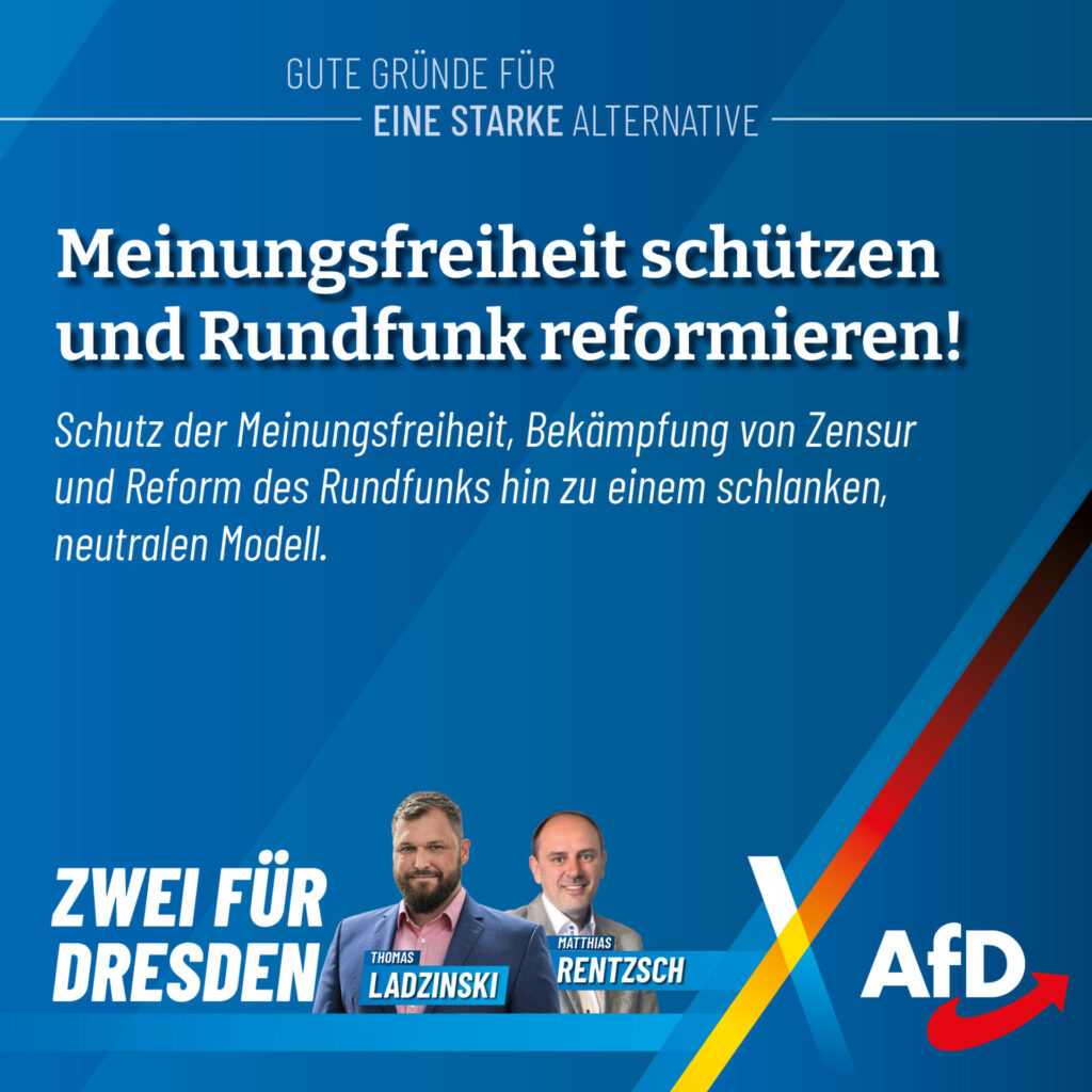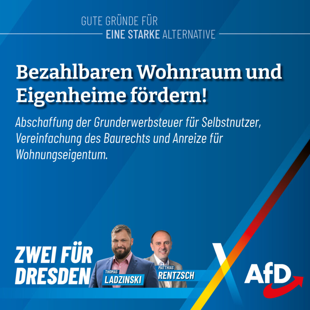 Thomas Ladzinski tritt als Direktkandidat für uns im Wahlkreis Dresden I an. Als erfahrener Kommunalpolitiker kennt er die Themen, die unsere Städte bewegen: Bau, Verkehr, Wohnen und Energiepolitik. Besonders wichtig ist ihm die Stärkung der kommunalen Selbstverwaltung. Kommunen müssen besser finanziell ausgestattet werden, und das Förderunwesen muss endlich zurückgefahren werden. Denn die kommunalen Vertreter wissen