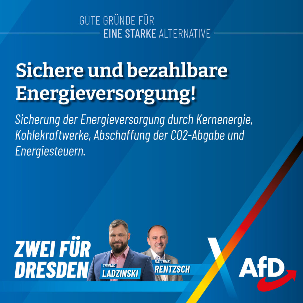Matthias Rentzsch tritt als Direktkandidat für uns im Wahlkreis Dresden II / Bautzen II an – für eine Politik mit klaren Werten: Familie, Freiheit, Eigentum und Verantwortung. Besonders am Herzen liegt ihm, dass das Stauseebad Cossebaude erhalten bleibt, damit Familien und Sportbegeisterte weiterhin davon profitieren. Gleichzeitig setzt er sich für die Reaktivierung des Pumpspeicherwerks Niederwartha