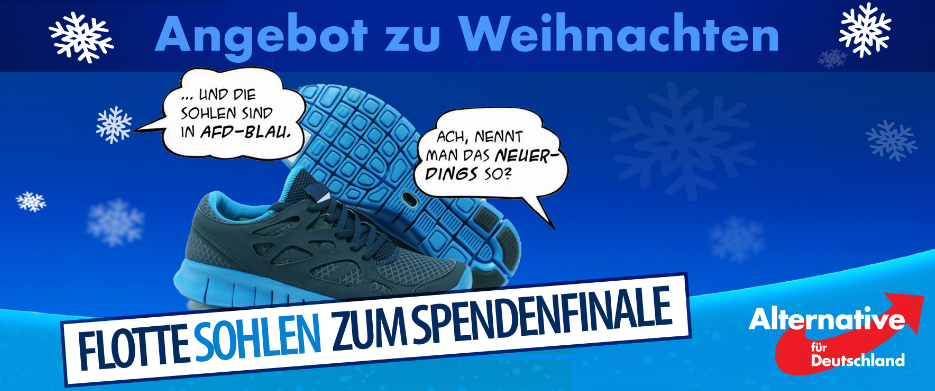 wir danken allen ganz herzlich, die unsere AfD in diesem Jahr durch ihr vielfältiges Engagement unterstützt haben, sei es durch das Verteilen der Faltblätter in Dresden, die Präsenz bei Infoständen, die politische Überzeugungsarbeit, bei Veranstaltungen, durch Spenden oder auf andere Art und Weise. Herzlichen Dank Ihnen allen!