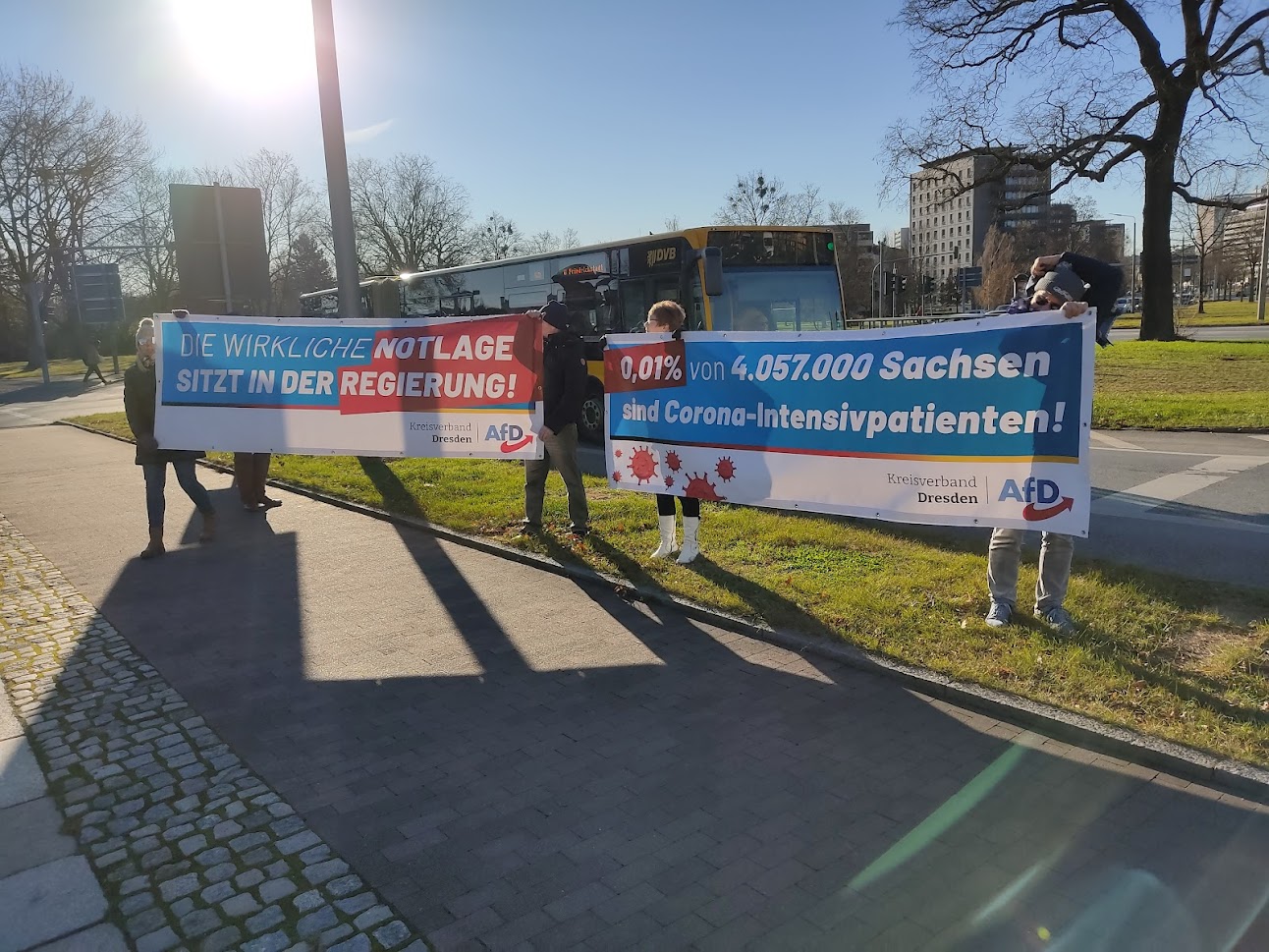 Kleine Banneraktion heute in der Dresdner Innenstadt.